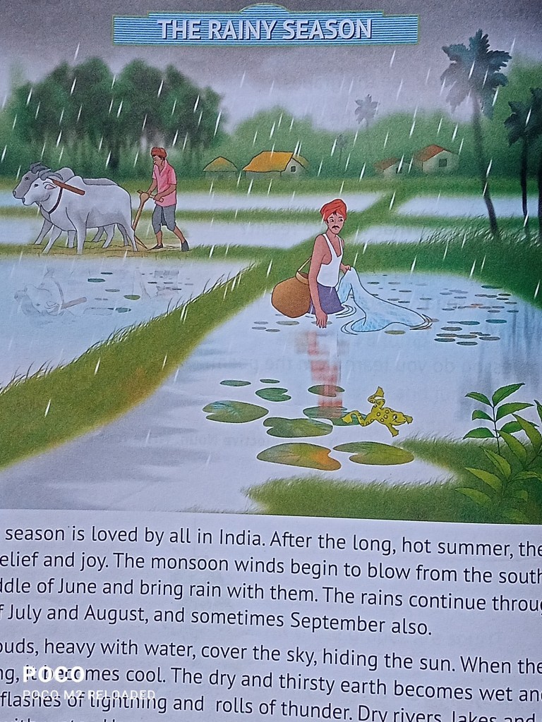 Answer: When the rain starts falling, it becomes cool.The dry and thirsty Earth becomes wet and soft. Dry rivers, lakes, and ponds are filled with water.